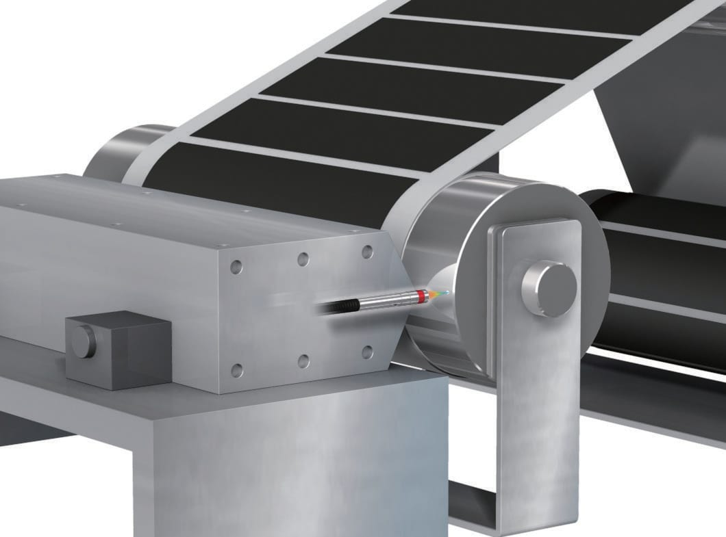 测量间歇涂胶装置的压膜和辊的缝隙。因为是ø8 mm 的超小型感测头,所以不会为安装场所所困,可以进行高精度测量。