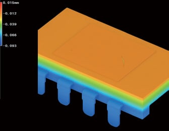 检测散热板的瑕疵或凹陷等。可不受背景色的影响进行3D 形状缺陷检测,从而实现稳定检测。