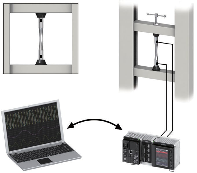 在对各种材料进行机械性质评估的拉伸试验中,需要测量由位移传感器输出的模拟信号。多重输入数据采集系统 NR 系列支持多重输入,除位移传感器的模拟输出以外,还可同时采集应变片或荷重元的荷重数据等多项数据。