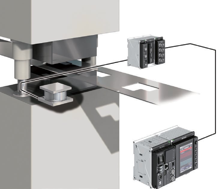 冲压加工用于汽车以及电气设备、金属及钢铁等领域。用于冲压线的加工及各种材料的弯曲加工、金属材料的剪切等各种加工,加压能力达到数万千牛顿的大型设备也并不罕见。进行冲压加工的机床有机械式与液压式等,能否准确测量并控制产生的力,对产品均质化及高精度化有重要影响。因此需要进行荷重测量。应变测量单元可直接连接应变片式荷重元,能够轻松实现荷重测量。