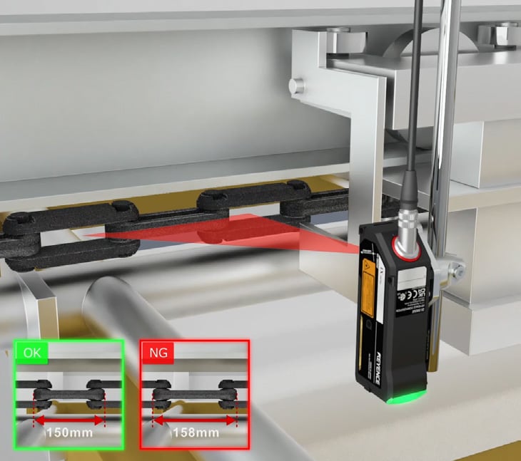 无需定期检查。虽然作业人员可定期进行手动测量,但确认工厂内的输送带链条会耗费大量工时。而且也有无法掌握经年劣化状态的风险。尽管也有不经确认定期更换的方法,但链条成本高昂,从削减费用的观点出发,利用传感器进行定期确认更具成本优势。