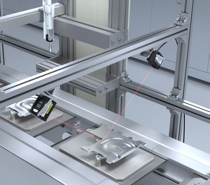 涂敷导热膏时确认工件在夹具上是否安装到位。如果没有安装到位,导热膏的分配器就会与工件碰撞,可能造成严重的设备故障而无法生产。使用 IL 系列,即使倾斜安装,也可以利用光量自动调整功能实现稳定检测。而且,与目标物的表面状态无关,均可稳定检测。