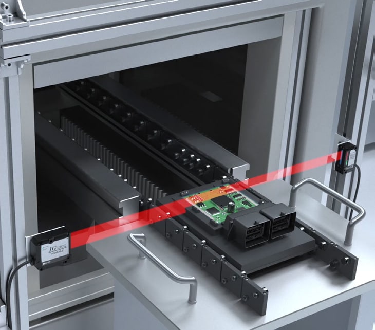 透过型的优点在于检测高度时不易受基板的色调影响。若为搬运时可使用AUTO.P 保持功能的装置构造,大部分浮动都可检测,处理能力强。