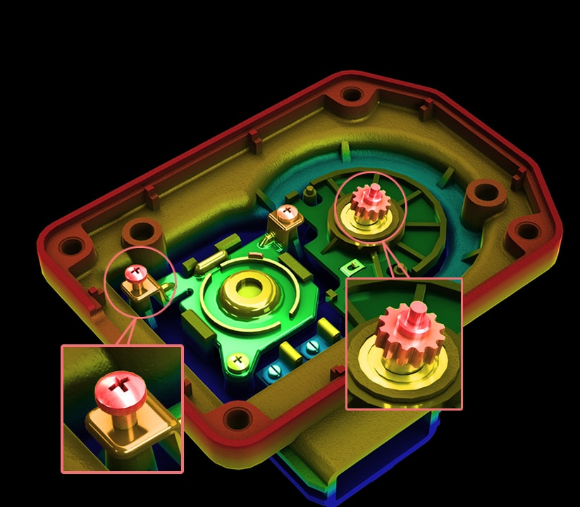 在装配不良、不同种类的零部件的检测上,除了 2D 的浓淡图像外,还可结合从 3D 图像获得的高度信息进行检测,因此无需与位移传感器组合即可进行统一检测。可广泛应对松动等的装配不良、突起和缺口等各种各样的形状差异,可在一个检测工艺中完成装配检测。