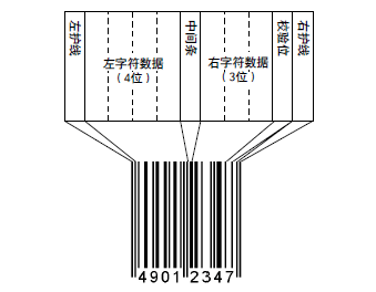 其他数字按顺序排列。从以上条码的安排可以看出,标准型包括校验位在内只有12位。但是实际上却代 表13位数据。关于此,对于这一点,看到页面在这里