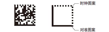 Data Matrix 码的数据区域四周为 L 形框(称为“对准图案”)和点线(称为“时钟图案”)。读取器将捕获这些图案,通过图像处理技术确定代码的位置。因此,可从各个方向上读取 Data Matrix 码。