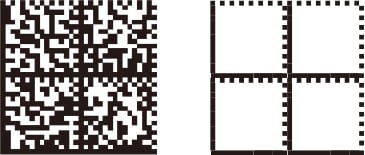 当模块数目超过 24 × 24 时,代码将分成区块,每侧不会超过 24 个模块。此结构可防止代码失真。