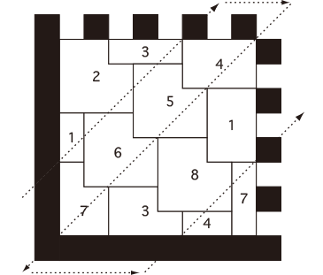 当某个代码的模块数目超过 26 × 26(对于数据,模块数目超过 24 × 24)时,它会划分为区块,如下所示,每侧不超过 24 个模块。此结构可防止代码失真。