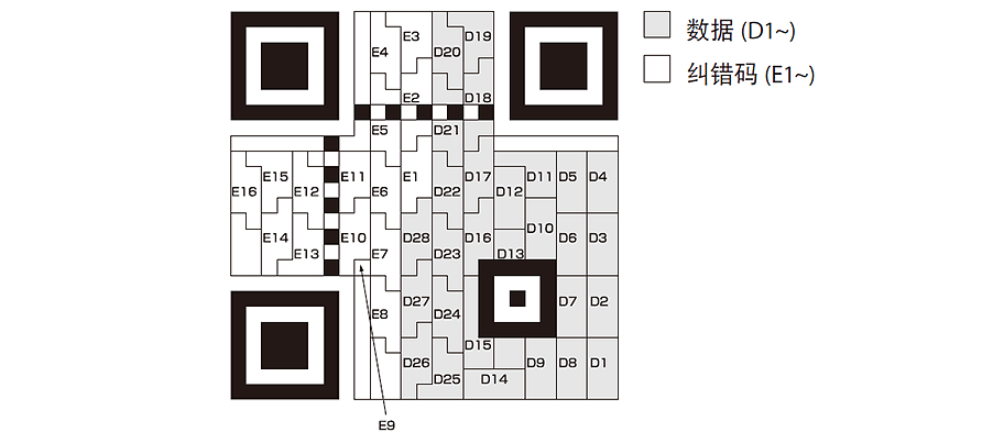 QR 码的最小元素(黑色或白色方块)被称为“模块”。QR 码是由黑色和白色模块、位置探测图案、时间图案、包含纠错级别和掩码编号的格式信息、数据区域以及纠错代码(Reed-Solomon 码)组合而成。