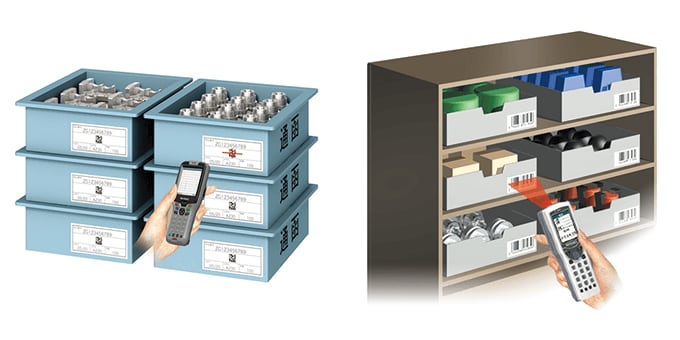 一旦收货时的目视检品发生错误,将在拣选工序中引发混乱,对其后的制造工序造成极大的损失。只要有效利用条形码读码器与条码,将产品信息和货架信息关联起来,就能切实开展拣选作业,促进存货盘点管理的高效化,加快核对作业速度等,推动作业的高速化、准确化。此外,一旦原材料过期,条形码读码器还会发出警告,避免将其误供应到生产现场。