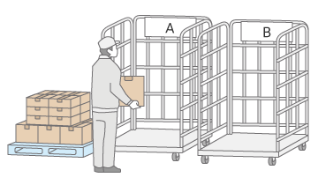 只要将条形码读码器和打印机连接起来,还能发行发货标签。这样一来,从拣选到包装、发货标签发行/粘贴的一系列流程都能流畅推进,使拣选→出库→包装→发货的流程更加高效。