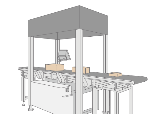 利用空置的空中空间,沿着屋顶铺设的轨道行驶的台车。和自动导引车(AGV)一样,可实现自动驾驶,不仅能搬运货物,还能对拣选货架进行自动补货、分发货方向分拣,在工厂进行部件的工序间搬运等等。