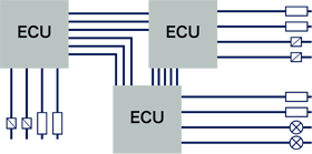 目前工厂以及医疗现场等都使用CAN,但最初的开发前提是在汽车内部使用的技术。其背景是满足随着汽车向高性能化发展,电子控制单元(ECU:Electronic Control Unit)日益增多的需求。控制内容变得复杂时会导致输入输出增多,ECU随之大型化,并且在多个ECU间共享数据时配线也会增加。由此出现的结果是复杂化、重量及部件数增加以及制造成本骤增。对此现象的解决对策就是能够以少的配线进行高速而可靠的通信的串行通信协议。
