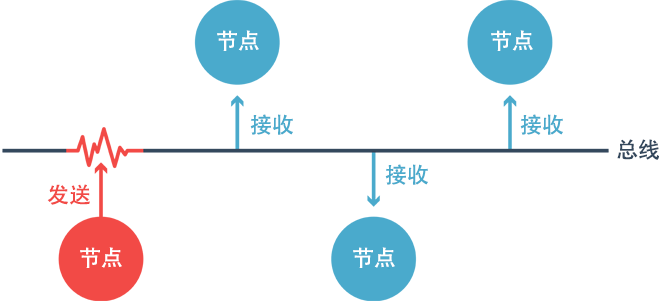 在CAN中,将通信线称为“总线”,将ECU(Electronic Control Unit)等控制装置称为“节点”,从节点经由总线向其他节点发送数据,由此称为“CAN总线通信”。另外,向总线发送数据也称为“访问总线”。通过连接多个节点来构建网络的方式有“星型”、“线型”、“环型”等,CAN采用的是线型方式。只要简单连接节点即可构建网络,因此具有设计简单的特点。