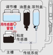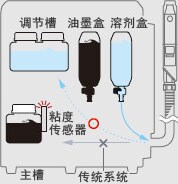 检测主槽的油墨粘度,根据粘度及时供给溶剂。从调节槽优先供给,不浪费溶剂。