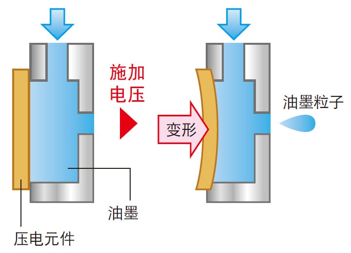 对油墨粒子加压喷出的方式包括压电式、热发泡式和压阀式。