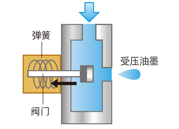 控制阀门的开合,从喷嘴喷出加压的油墨。