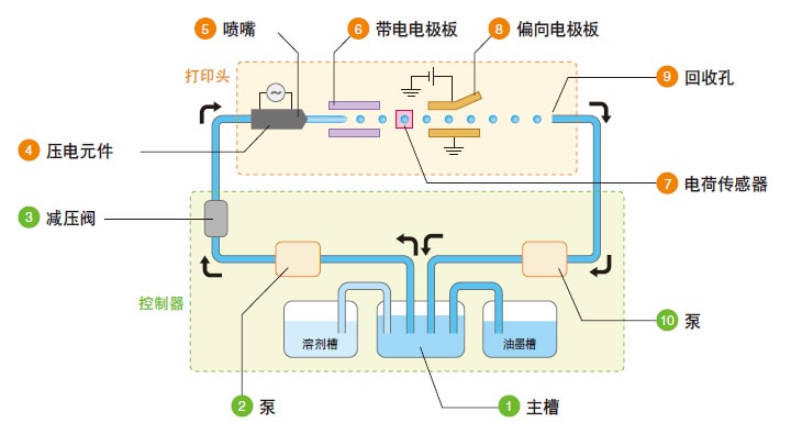 - 主槽中的油墨浓度升高时,向主槽供给溶剂以控制粘度。