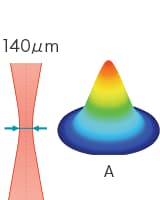 - 与标准型相比激光光点直径较小,因此可有效进行精细刻印。而且,由于光点小、功率密度高,可高效进行切割和打孔等加工。