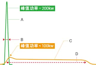 * 峰值功率:1个激光脉冲中的最大瞬时输出值
