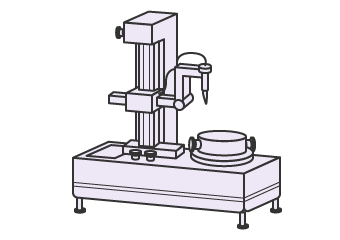 使用接触式的三坐标测量仪时,用探针顶端附带的球状探针指定目标物的测量点或线,能够检测三坐标(X、Y、Z)上的坐标值。因为用测得的坐标值数据组计算要素(直线、平面、圆、球体等),不仅能够测量复杂立体形状物的长度,还能精密测量角度、各要素间的位置关系、轮廓形状、几何偏差等。