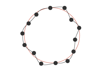 以圆为例,求出各测量点径向偏差二乘和最小的平均值,构建圆形。