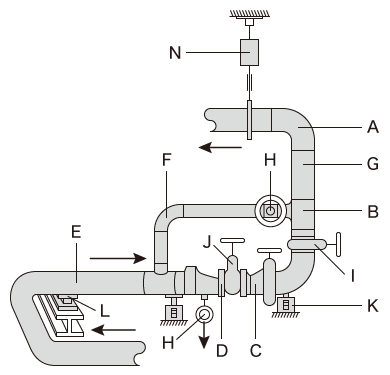 - A:长弯头 B:T形管 C:异径管 D:法兰 E:弯管 F:短弯头