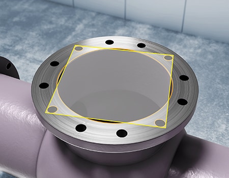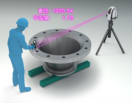 法兰面的直角度会影响配管的安装精度。特别当大口径法兰上连接长管时,稍有误差就会形成巨大的安装误差。而且,法兰夹住垫圈,通过螺栓将部件彼此接合。法兰上因螺栓而产生强力的紧固扭矩,通过该力按压垫圈,实现气密性。当法兰面有起伏等时,会无法充分地按压垫圈。如上所述,法兰的尺寸和形状误差会导致嵌合不良,造成流体泄漏等严重事故,因此需要仔细测量。
