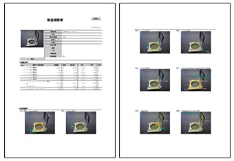 - 可自动制作带照片的检测结果报告书,测量位置一目了然。不仅有助于和客户建立信赖关系,还能以数字形式保存测量结果,从而提升公司内部数据管理的效率。