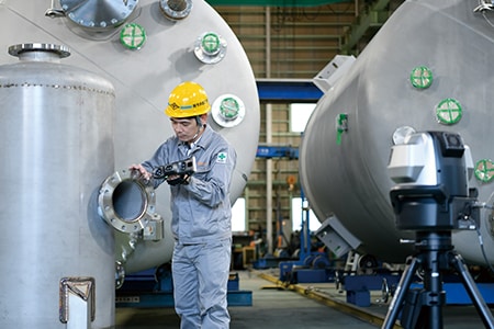 采用“WM系列”,只需将探头接触测量点,单人也能进行定量测量。不仅是因焊接而出现的变形和应变,闸门阀的安装角度也只需探头接触就能完成测量。可测量三维位置坐标。此外,还可以快速确认公差值相对于设计值的判定。