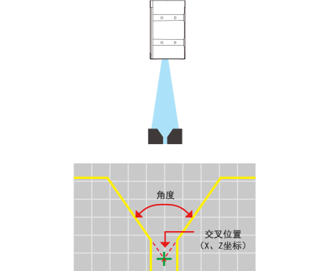 获取激光线束照射部位的截面形状,并根据其形状测量角度。