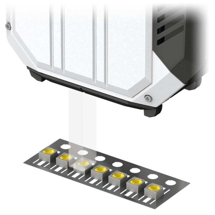 “LJ-X8000系列”不仅能够识别已涂布焊锡膏的面积,还能对高度、体积、位置进行高速测量。即使是对于部件配置高密度化的印刷电路板,也能进行高精度的涂布检测。