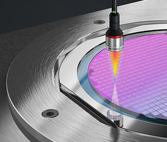 在半导体量产的工序中,要维持精度及品质,就必须维持自动工序装置的精度。尤其是自动安装晶圆时的倾斜、高度不准确等问题,会对工序的品质造成很大的影响。对于这一问题,通过在装置内部导入超小型传感头的“彩色激光同轴位移计”,可以监控装置内的晶圆是否存在高度异常或倾斜。