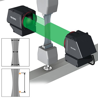 通过测量宽度,可检测出扁线边缘的损坏等。使用高速采样功能,即使出现局部损坏仍可准确无误地进行检测。