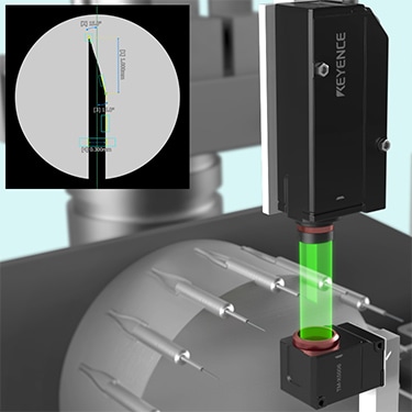 可在线准确测量要求高精度的针的尖端形状。测量仪同时支持可追溯性,可实现高度可靠的检查。而且,即使改变测量仪器与目标物的距离,也无需进行图像校正。可在线实现稳定的测量。