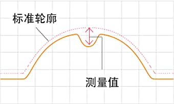 与注册的标准轮廓相比,测量高度差最大的部分。
