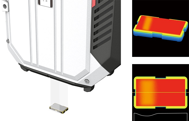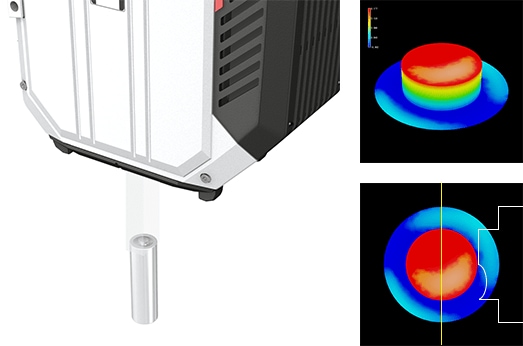 但是,在电池的大量生产过程中,如果使用传统的1D激光位移传感器,检测非常费时,而且受工件检测部位形状的影响,会出现死角,并需要移动载物台。