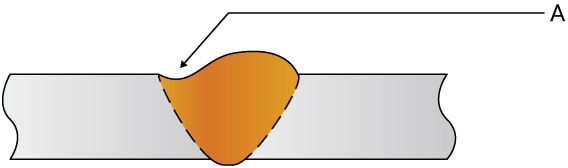 溢出到母材表面的熔融金属,在未熔融母材的状态下冷却时发生。通常是由于焊接速度过慢,导致焊接金属用量过大所导致的。此外,若在角焊焊接中发生,过剩的熔融金属会因重力而向下垂淌。必须采取措施,优化焊接条件(提高焊接速度、减小焊接电流等)。