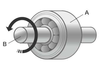 - 这些轴承用球状或圆柱状的滚子支撑轴。使用球的轴承称为“球轴承”。使用滚子的轴承称为“滚柱轴承(圆柱滚子轴承)”、“滚针轴承(滚针轴承)”,负载能力高,可制作得比球轴承更薄。