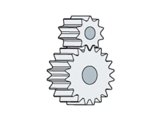 将直齿圆柱齿轮的齿线扭转成螺旋线状的齿轮称为“斜齿圆柱齿轮”。与直齿圆柱齿轮相比,其同时啮合的齿数更多,因此强度更高,振动和噪音也更小。斜齿圆柱齿轮也称为“Helical Gear”。