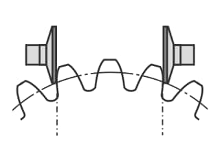 使用齿厚千分尺等测量固定齿数范围内的长度。此时所跨的齿数称为“跨齿数”,由于是根据该齿数来测量齿厚,因此被称为“公法线长度测量法”。由于是根据齿数进行测量,无需设定基准面,但与弦齿厚法一样,测量结果会因测头的接触情况而异,且当左右齿廓压力角不同时也会成为误差原因。此外,还会受到齿距和齿形的影响,因此需要对齿轮整个圆周进行数次测量。