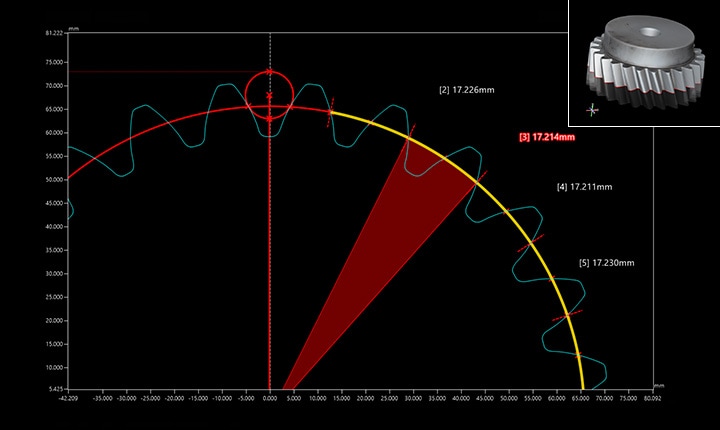 - 360°完整扫描复杂的齿轮形状,可轻松测量跨棒距。