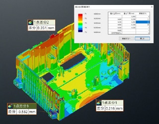 通过色谱图将整个产品与设计值(三维CAD数据)的偏差可视化。