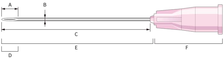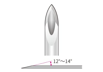 比Lancet point(标准斜面)针尖斜面短,降低了组织损伤等风险的针头便为Lancet point(短斜面)。针尖斜面的角度从18°到20°较陡,穿刺时的阻抗较大且不锋利。在采血等时有刺伤血管危险性的情形下使用。