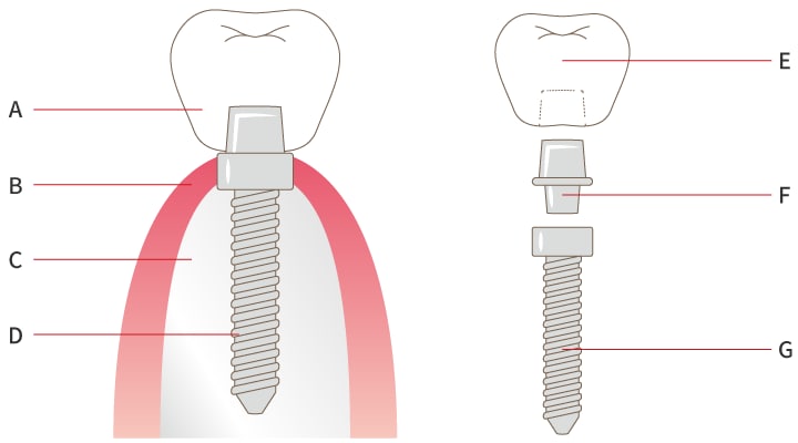 - 连接人工牙和种植体的部分。钛的强度高,不容易生锈,耐久性出众,但由于可看到金属部分,缺乏美观性。氧化锆也具有高强度,而且不用担心金属过敏。颜色为接近牙齿颜色的白色,十分具有美观性。