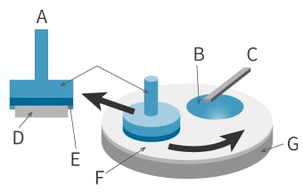 这是一种将目标物放置在被称为研磨盘的平面固定盘上,在目标物与磨盘间注入研磨剂(金刚石、碳化硅、氧化铝等)作为磨粒,通过旋转工作台的方式,切削目标物表面的研磨方法。
