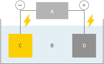 将目标物浸泡在被称为电解研磨液的酸性液体中,把目标物作为阳极并通电。相对电极表面会溶出微量的铁、镍原子,目标物被蚀刻。根据阴极的装设位置,被对准的部分将被切削,从而能以较小的蚀刻量实现精细的粗糙度处理。