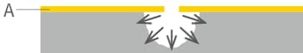 在掩膜开口部分,会顺着表面的放线方向,以同样的速度被蚀刻,因此掩膜正下方被蚀刻(侧蚀、底切)。在去除牺牲层时会使用该方法。