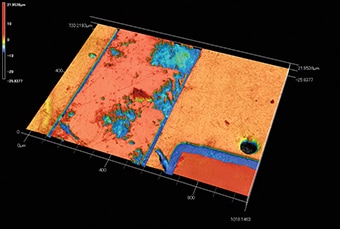 不仅能观察到只能通过SEM观察的金属组成,还能通过测量蚀刻腐蚀部位的高度,评估组织的成分。