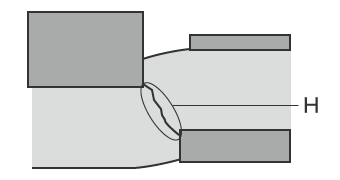 - 加工材料无法承受拉伸力时,加工材料上出现龟裂。